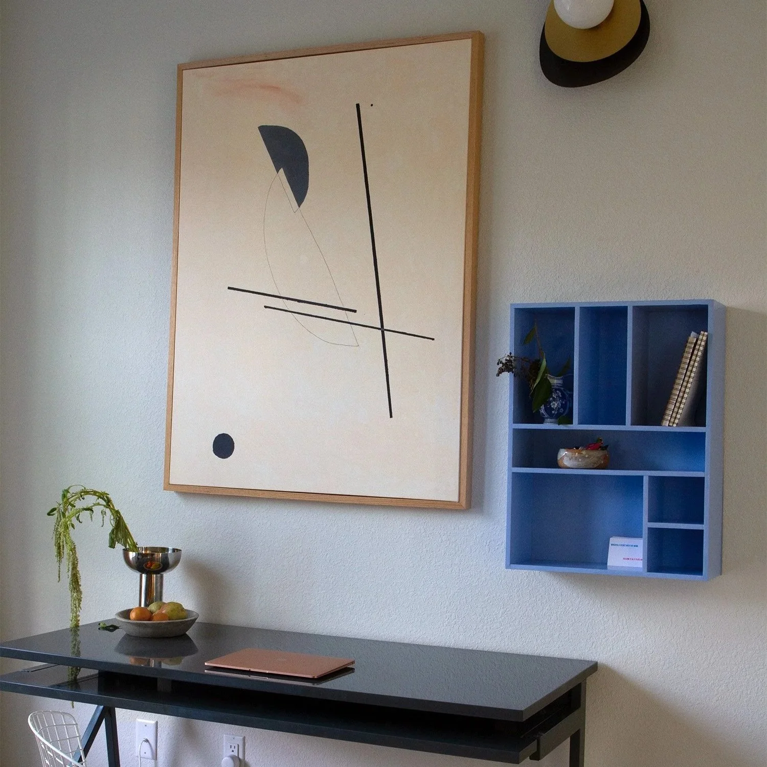 Pojagi is the Korean art of patchwork—a centuries-old practice where fabric scraps are pieced together with precision and intention. What emerges isn't just functional textile, but geometric compositions where every seam serves both structure and beauty. This wall storage translates that same principle from cloth to wood: asymmetric compartments that organize your space while creating visual rhythm on your wall. The irregular grid isn't arbitrary—it echoes the careful balance found in traditional pojagi, where pieces of different sizes come together to create something greater than their parts.